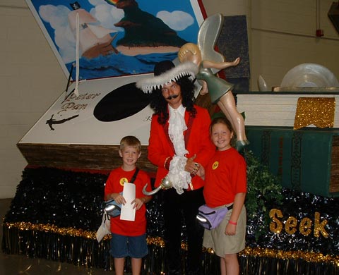 Taylor, Captain Hook, Ashlee. After the parade we went to see the floats up close.